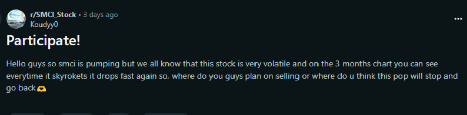 Many of you know that Twelve Points considers financial literacy and education a core part of our mission. The Fear of Missing Out, or FoMO, is a psychological phenomenon that has become increasingly prevalent in the last couple of decades, particularly with the rise of social media. Fear of Missing Out is a unique term introduced in 2004 and then extensively used since 2010 to describe a phenomenon observed on social networking sites. In fact, it eventually made it to the Oxford Dictionary. In 20131, British psychologists elaborated and defined it as “pervasive apprehension that others might be having rewarding experiences from which one is absent”, FoMO is characterized by the desire to stay continually connected with what others are doing. Today, more than ever, people are exposed to a lot of details about what others are doing; and people are faced with the continuous uncertainty about whether they are doing enough or if they are where they should be in terms of their life. It’s also interesting to note that FoMO is a global phenomenon, with research evidence present from North America, Asia, Europe and Australia which further underscores the need to understand the problem. The Fear of Missing Out significantly influences decision-making in various aspects of life. It can lead to feelings of dissatisfaction, anxiety, restlessness, or sadness. These emotions can spur individuals to make impulsive or ill-considered decisions. In the context of financial decisions, the sensation of missing out may lead to risky behaviors, such as making hasty investments or spending beyond one’s means. This is particularly dangerous when it comes to managing finances. For example, seventy-nine percent of respondents in the millennial and Gen Z generations reported using social media to get financial advice, according to a poll commissioned by Forbes Adviser and carried out by market research firm Prolific. The survey also found that 76% of respondents think social media’s financial content has made it less taboo to talk about money, while 62% feel more confident by having access to financial advice. The great majority of millennials and Gen Zers found financial advice on social media with about 7 out of 10 respondents (69%) saying they come across financial advice on social media at least once a week, and a quarter do so daily. Millennials prefer Reddit, while Gen Zers choose YouTube. Just 31% of millennials and Gen Z respondents said they often verify the credentials of those who offer financial advice on social media. Several financial topics are covered on social media platforms, including advice on stock and bond investing (the most popular topic, according to study respondents, at 57%), suggestions around debt reduction, and advice for retirement savings. Get-rich-quick scams (11%) and borrowing money (7%) were the two least discussed issues among individuals polled. However, 28% of respondents claimed to have lost money as a direct result of financial advice they received on social media, while 50% claimed to have gained money as a result. Despite the cautions of financial experts, 78% of those polled felt they have more access to financial advice now than they would have in earlier generations because of their identity, such as their ethnicity, gender, or income. Here is an example of the investment advice found on Reddit – SMCI is Super Micro Computers Inc (a well-known Artificial Intelligence (AI) company):