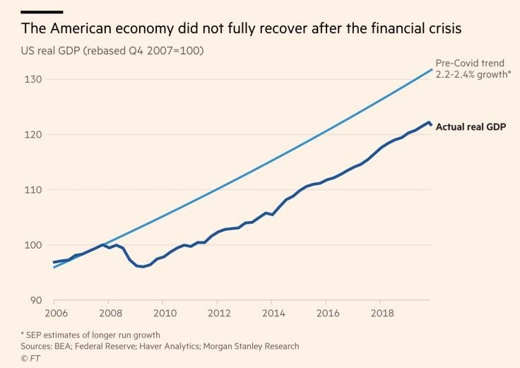 Conversely, the significant contraction in money supply after the Financial Crisis of 2008 brought on a “jobless recovery” during the period from 2009 to 2018.