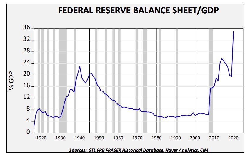 Chart 5 below provides a sense of scale to the problem facing the Federal Reserve by looking at the size of the Fed’s balance sheet as a percentage of our economy over the last 100+ years. The Fed has previously responded to economic crises by expanding their balance sheet, e.g. Great Depression, WWII, and had been on their way to unwinding the expansion that occurred in response to the ’08 Financial Crisis when Covid-19 hit – resulting in an all-time high for this measure at the end of 2021. The bottom line is that the Federal Reserve has a long way to go before it can get the genie of inflation back in the bottle.